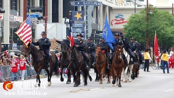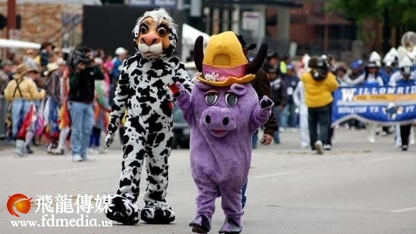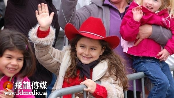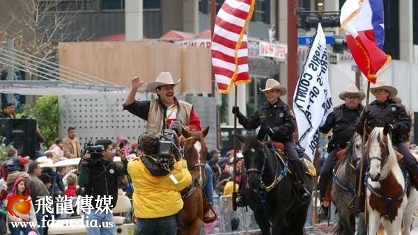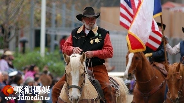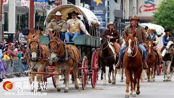休斯顿牛仔节大游行锣鼓喧天热闹非凡。