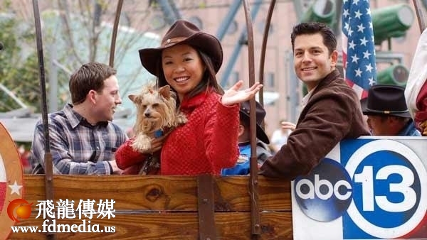 德州州议员吴元之的夫人、ABC电视台主持人Miya Shay参加游行。