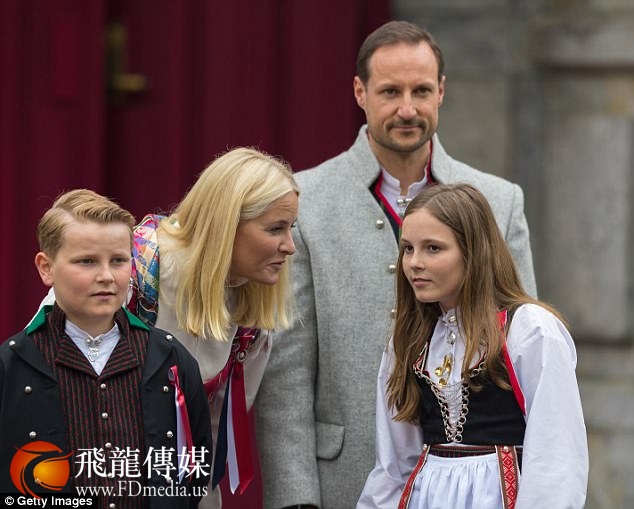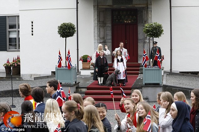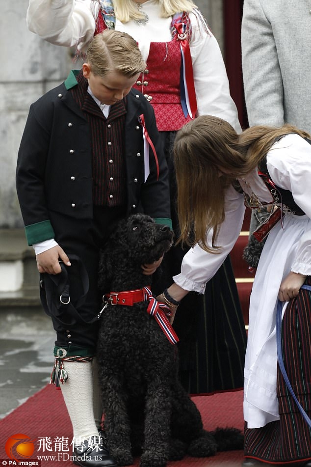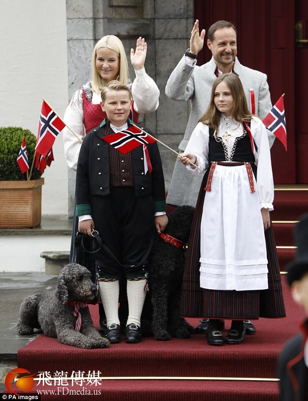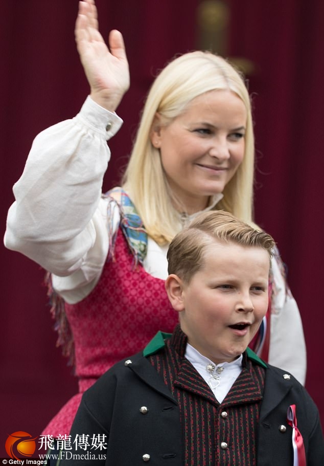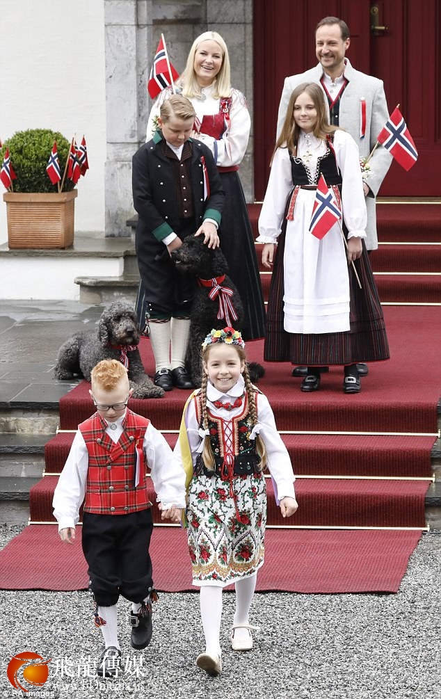 当天,王储哈康·马格努斯王子和其儿子斯维尔·马格努斯王子身着传统的挪威服饰,白衬衫、过膝袜,而王妃和公主穿着连衣长裙,腰前系着围裙。