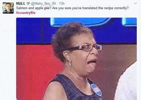 网友Matty boy表示,三文鱼苹果馅饼?你确定自己翻译对了那个菜谱吗?