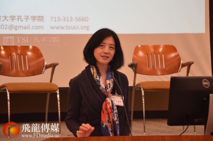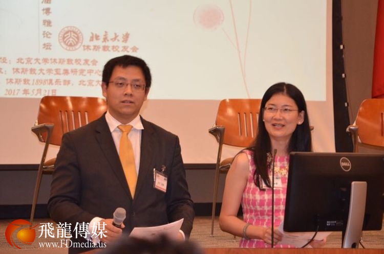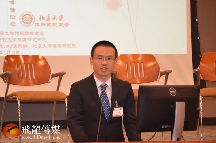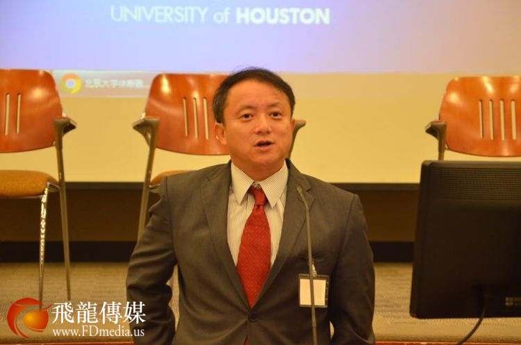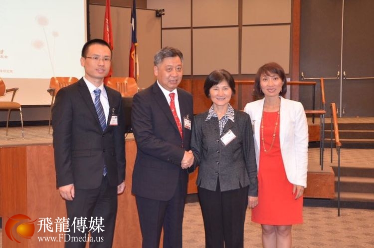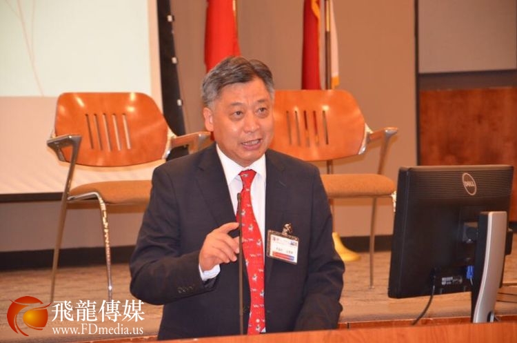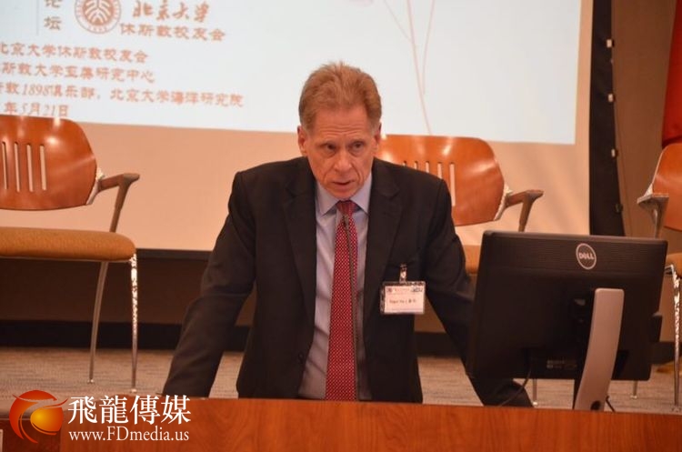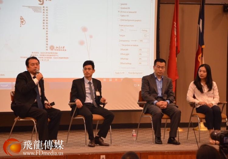 做中美关系与汉语推广人才培养主题发言的是德克萨斯南方大学孔子学院美方院长Roger Hart 和中方院长兼北京交通大学的易晓教授。 Hart 院长他曾经在北京大学留学学习汉语,讲一口流利的汉语,对老子的《道德经》也很有研究。 他的汉语演讲水平和对中国哲学的深入了解让校友们很吃惊。
