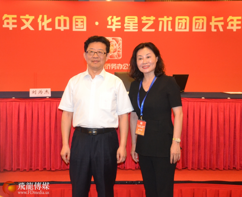 巴西华星艺术团艺术总监 唐宏伟与国侨办宣传司司长许玉明合影留念。