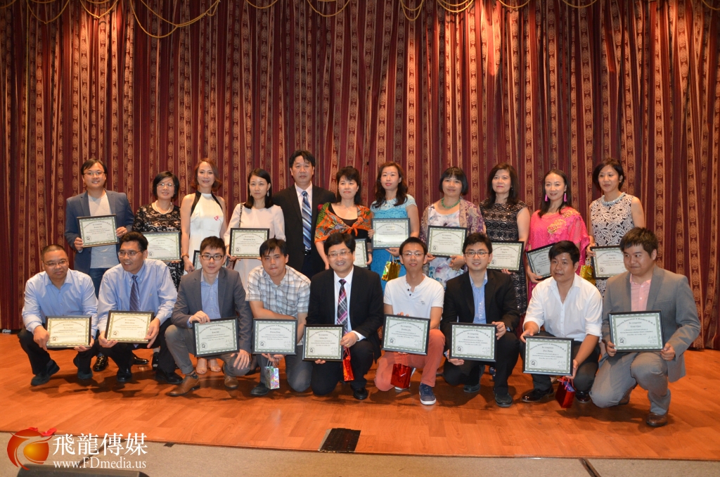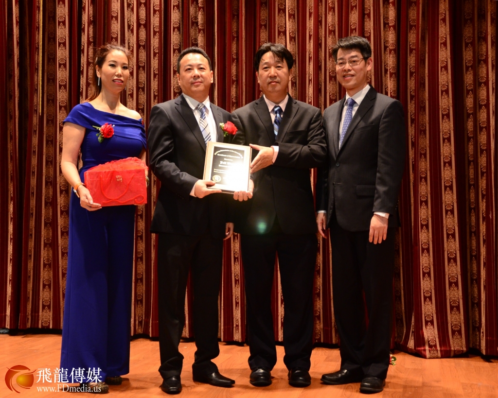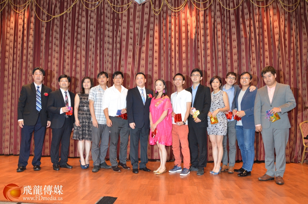图右起:副总领事赵宇敏 、新会长吴因潮、老会长 Jeff Wang、Kathy Pang 。