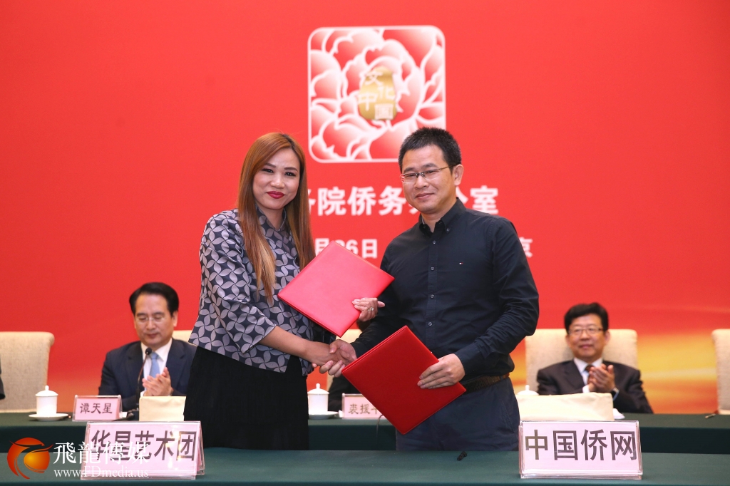 “华星艺术团”入驻“侨宝”手机客户端签约仪式在北京举行,国务院侨办主任裘援平、副主任谭天星等出席。中国侨网负责人与全球42家“华星艺术团”代表在合作备忘录上签字。