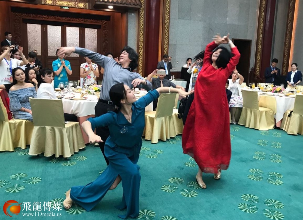 美国三位华星艺术团的团长,著名舞蹈家徐利、晓佩、李恒达即兴伴舞《鸿雁》。