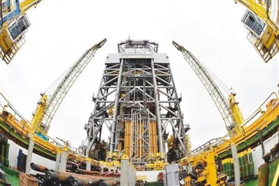 “蓝鲸一号”钻探平台。新华社记者 梁 旭摄