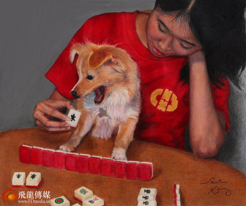 竞仪自幼随张老师学习绘画和做人,近十年不间断。她酷爱纽约的艺术氛围,一心想去纽约学习。在美国艺术学校作品集日(Portfolio day), 来自多所著名艺术学校的老师们一致赞赏竞仪的绘画基本功。十一年级时去作品集日,她的作品集被SVA当场接受。PRATT Institute艺术学校的老师建议她将作品集重新排列,争取获得最好奖学金。她最终也被PRATT录取并获得高额奖学金。SVA的平面设计在全国享有盛誉,竞仪义无反顾地选择了SVA。