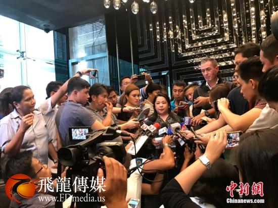 | 6月2日下午,菲律宾马尼拉云顶世界酒店高层召开记者会,公布已经核实身份的遇难者名单。中新社记者 张明 摄 |