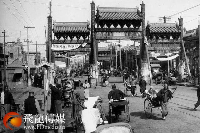 北平,1929年。【摄影:Arnold Heim】西四牌楼是西四的全称,它与皇城以东的东四牌楼相对称,是北京城两个重要的交通要道和繁华商业街。图片来源:旧影阁的凤凰号。