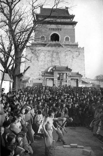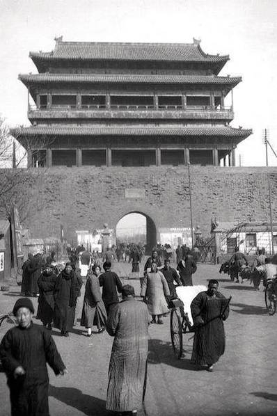 钟楼;北平,1929年。钟楼,位于北京东城区地安门外大街。原址为元大都大天寿万宁寺之中心阁。明永乐十八年(1420年)建,后毁于火。清乾隆十年(1745年)重建,十二年竣工。