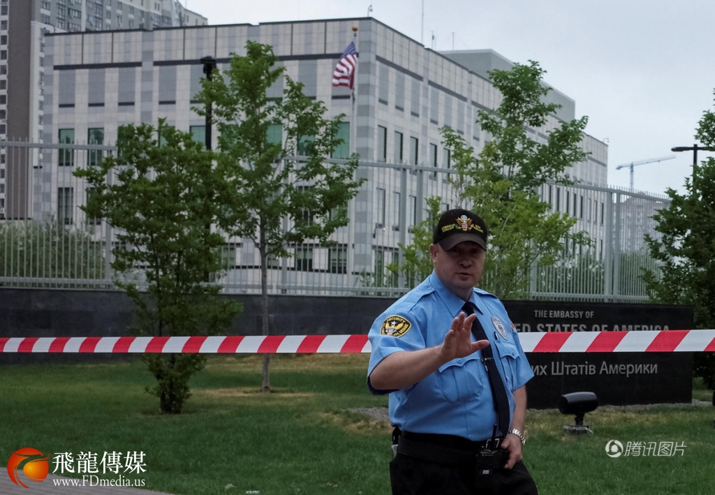 保安在美国驻乌克兰大使馆执勤。