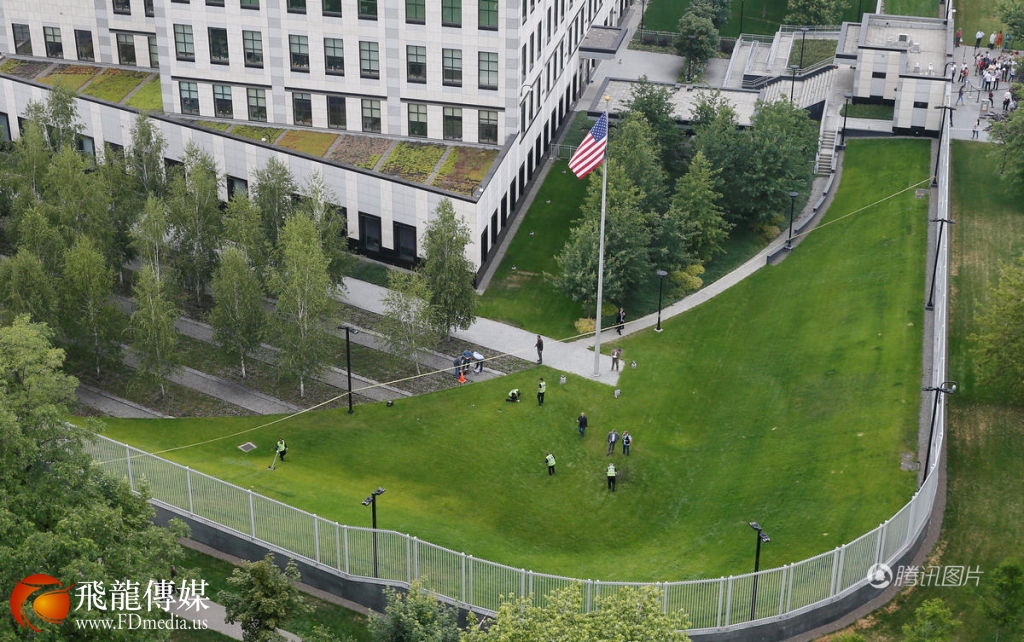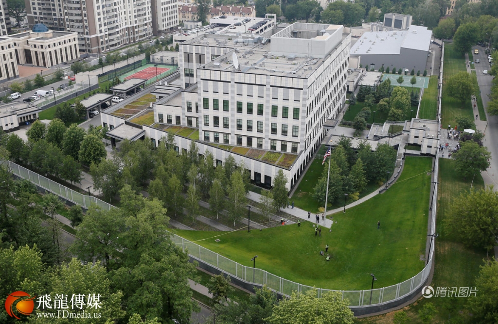 美国驻乌克兰大使馆鸟瞰。美国使馆报告没有人员伤亡,使馆已经照常办公。