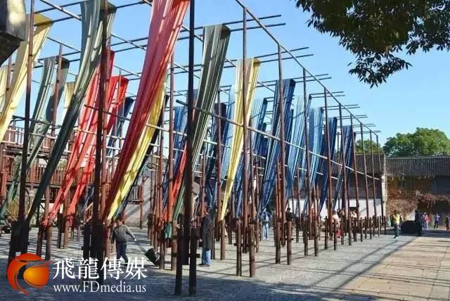 宏源泰染坊中随风飘舞的花布,长长的布带看上去非常壮观,很有当地风味。