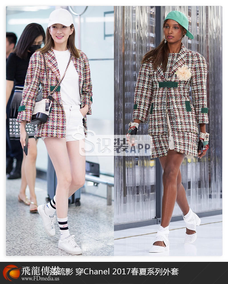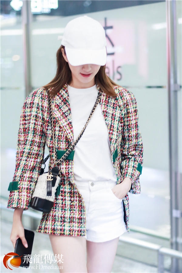 江疏影现身上海机场,身穿CHANEL外套,斜挎CHANEL黑白拼色小包,搭配Michael Kors 小白鞋,整体造型青春又时髦~爱笑的小姐姐真好看~