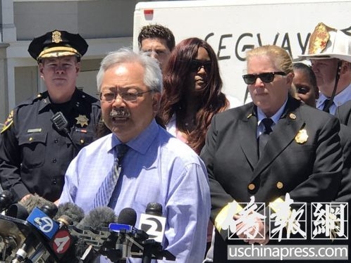 旧金山市长李孟贤谴责枪手的冷血行径,对遇难者表示哀悼。(侨报记者陈勇青摄)