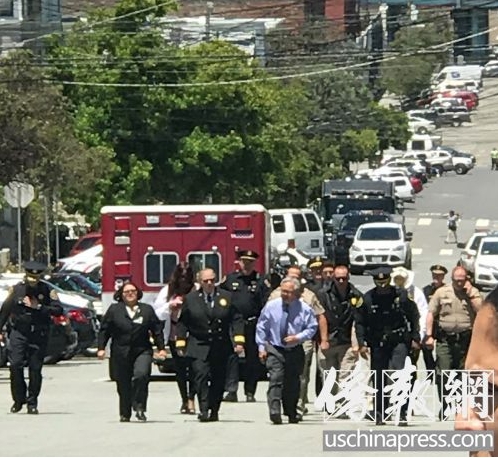 旧金山市长李孟贤与警方迅速到达现场了解情况。(侨报记者陈勇青摄)