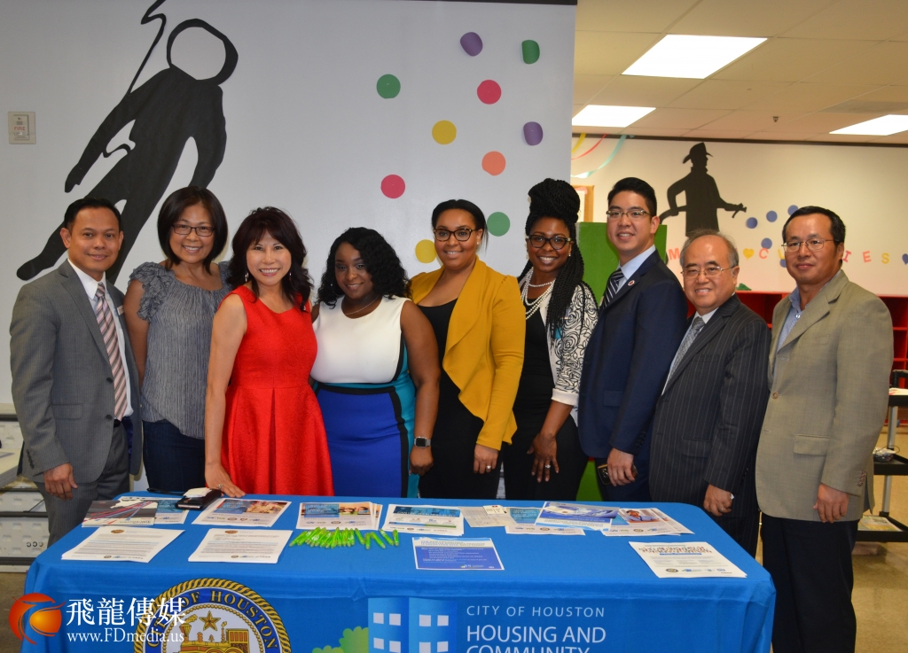 参加的民众在休斯敦市政府住房和社区发展部设立的服务区做咨询。