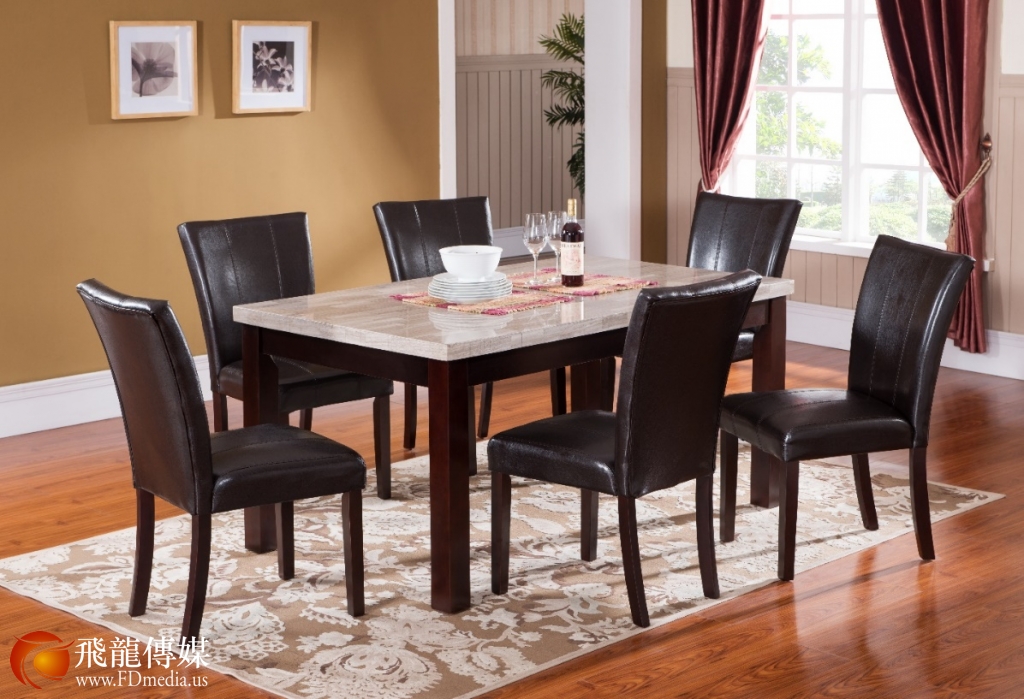 大理石餐桌,配套6把皮椅