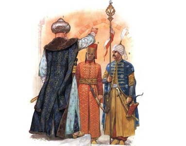 客观来说,这样的政策本身并没有问题,事实上全世界一直到近代都在用类似的治国策略。奥斯曼帝国专门从基督徒家庭中选拔男孩,在布鲁萨皈依后,训练成为苏丹的个人奴隶兵,这就是赫赫有名的切尼耶里禁卫军。⑧无独有偶基督徒也广泛使用穆斯林作战,包括和穆斯林有着深仇大恨的十字军,一样有大量突厥骑射手。其原理基本相同,就是在自己原本的系统之外寻找一支力量,因为这支力量在体系内没有根基,只能跟随把他们领进来的引路人,可能比体系内原本的力量还要来的忠诚。