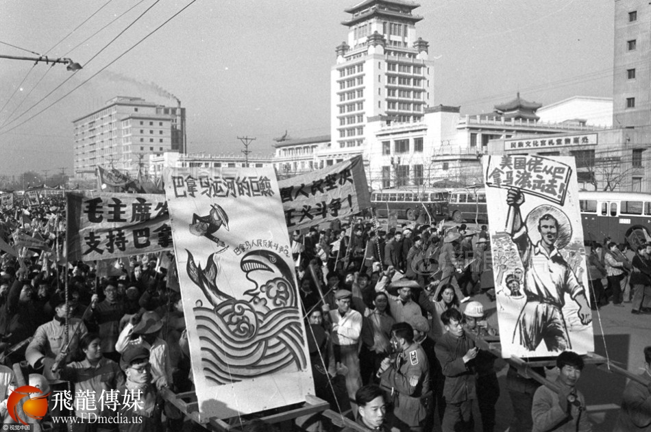 从上世纪六十年代起,中华人民共和国政府就与巴拿马保持着往来,这种往来包括官方和民间的。图为1964年,中国人支持巴拿马人的游行。供图|视觉中国
