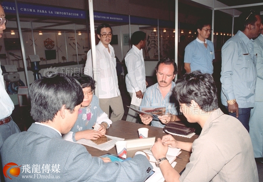 1986年10月14日至27日,在巴拿马首都巴拿马城举办了第四届中国出口商品展览会,共展出商品1500余种。展览会上,外商正在洽谈贸易。马占成|新华社