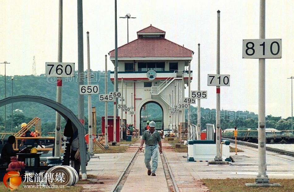 1999年底,美国最终向巴拿马交还“永久租借”区的控制权。中国对巴拿马的经济有着越来越大的影响力。自1994年起,中方每年都会派团参加巴拿马国际博览会。自1996年起,两国开始在首都互设贸易发展办事处。图为1999年,一个巴拿马工人走在巴拿马运河的一个水闸上。