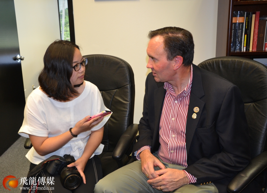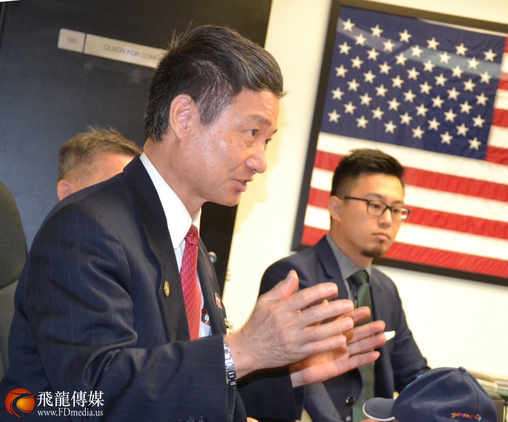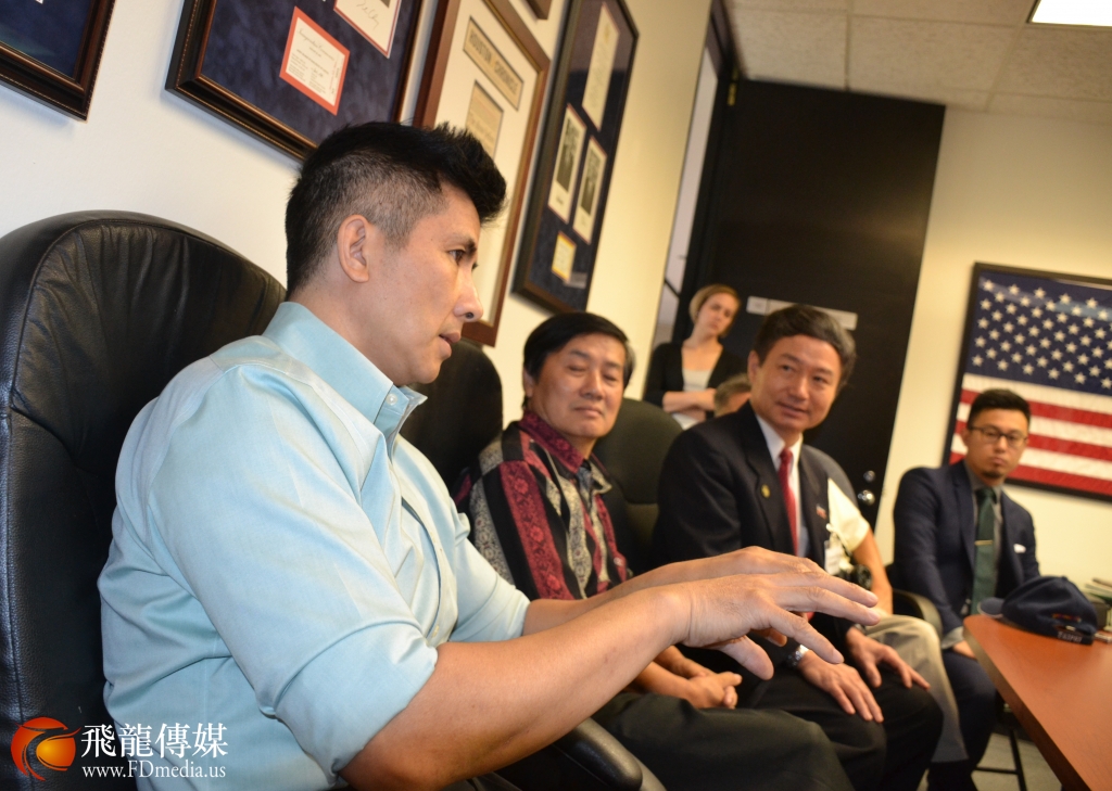 在国会议员Pete Olson 亚裔助理张晶晶的安排下,国会议员Pete Olson在办公室热情的接待华侨社团领袖代表。