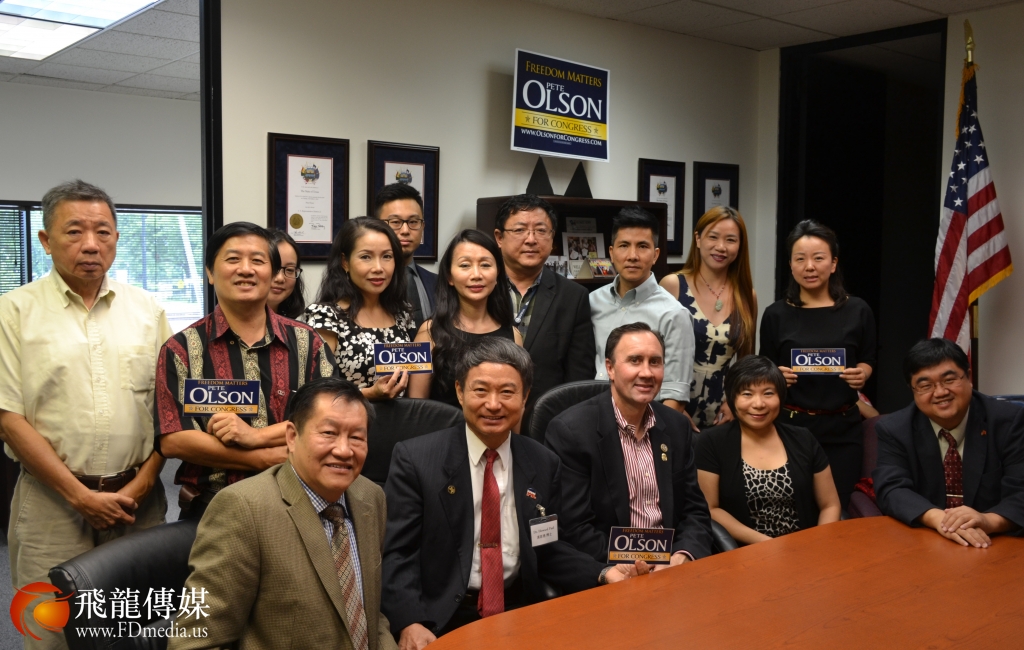 6月24日,由北美洲台湾乡亲会休斯顿分会和德州中国和平统一促进会联合组织休斯顿侨领20人,到美国国会议员Pete Olson在休斯顿的办公室拜访。