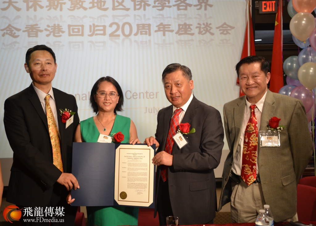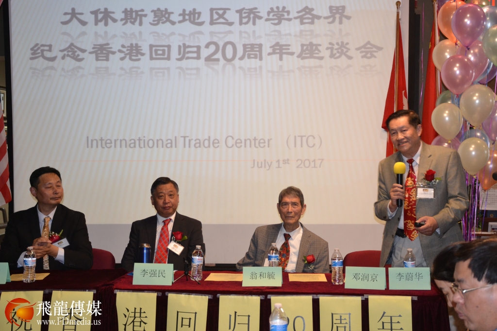 2017年7月1日,休斯顿侨学界举行纪念香港回归二十周年座谈会。中国驻休斯顿总领馆李强民总领事、张铁虹领事、高桦领事、美国国会议员希拉.杰克森.李的亚裔代表罗玲、国会议员Pete Olson的亚裔代表张晶晶、休斯顿侨学界代表及华文媒体记者一百多人出席座谈会。