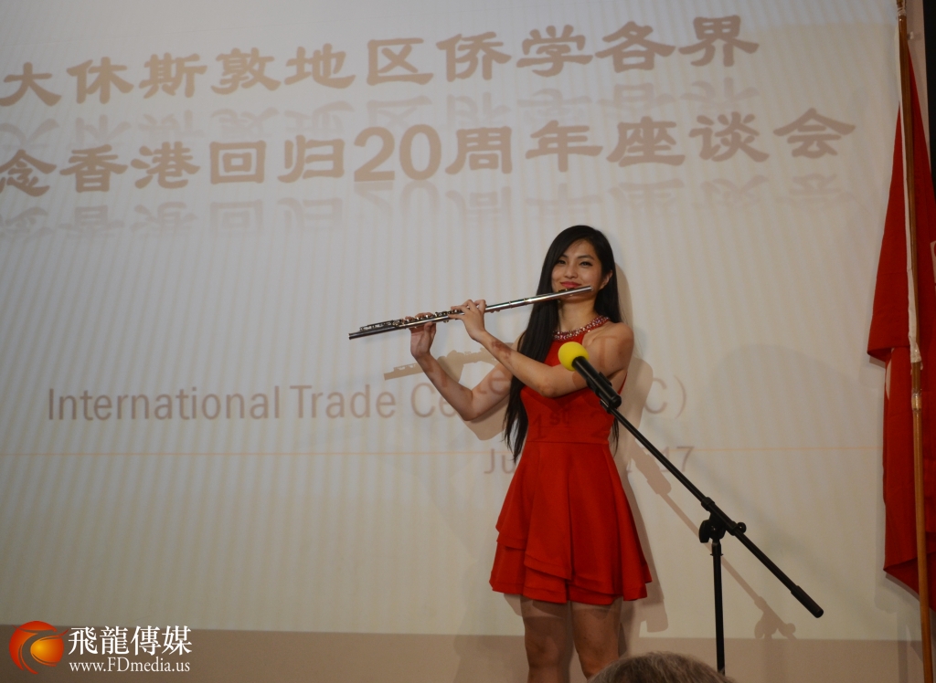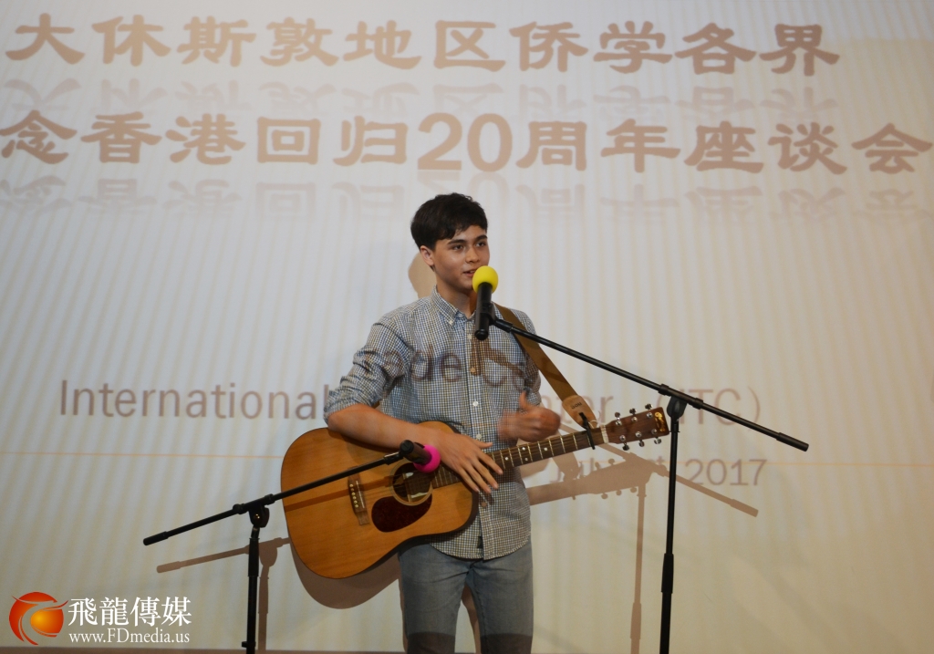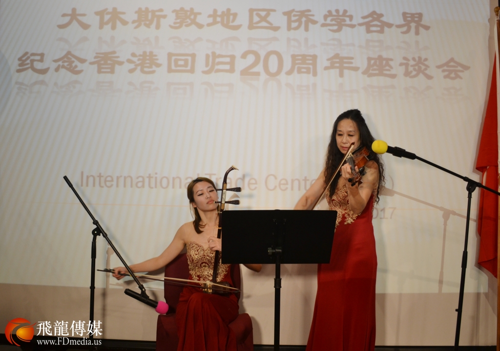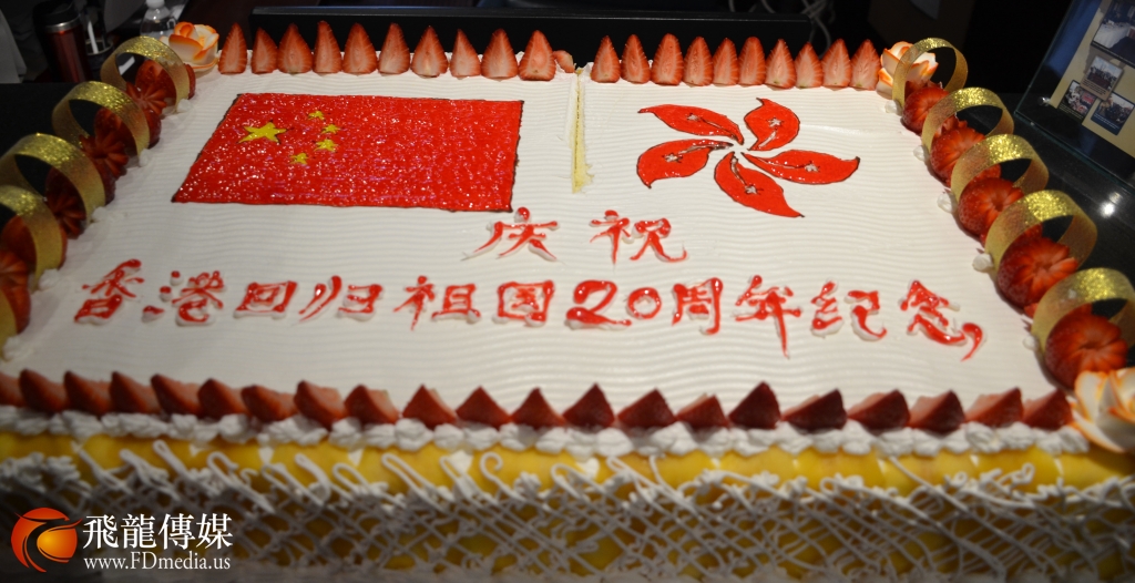座谈会上休斯顿休斯顿知名歌唱家胡辛曙演唱《我是中国人》、混血小歌手亮亮自弹自唱《龙的传人》等精彩演出,休斯顿知名点心店“蛋挞王”特别为座谈会定做有中国国旗和香港特别行政区旗帜标志的蛋糕来庆祝香港回归二十周年,大家对祖国的祝福用各种形式来表现,无论你身在哪里,只有祖国的强大,在海外的华人才有依靠,中华民族的伟大复兴是全世界中华儿女共同的心愿。