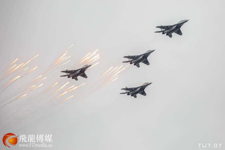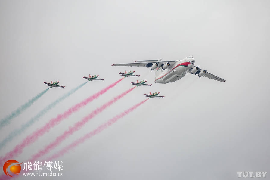 图为7月3日,在白俄罗斯首都明斯克,独立日阅兵式的空中梯队。