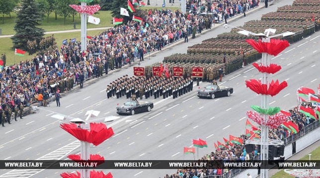 图为7月3日,在白俄罗斯首都明斯克,独立日阅兵式现场。
