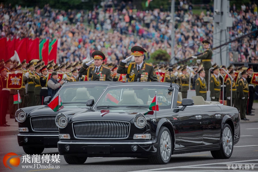 7月3日,白俄罗斯在首都明斯克举行盛大阅兵式,庆祝独立日。中国国产红旗轿车做为阅兵军亮相,大为抢镜。