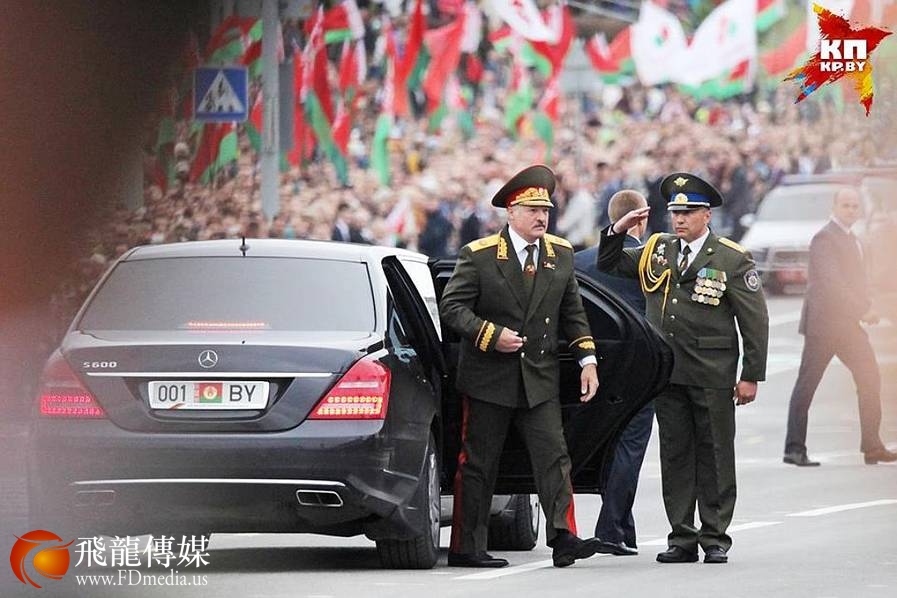 白俄罗斯总统卢卡申科在阅兵式上致辞说,白俄罗斯作为独立国家奉行和平多元的外交政策,坚持各国平等和不干涉内政的原则,主张通过谈判解决任何国际冲突。图为总统座驾奔驰S600。