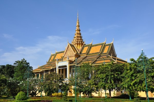 柬埔寨王国(the Kingdom of Cambodia),通称柬埔寨,旧称高棉,位于中南半岛,西部及西北部与泰国接壤,东北部与老挝交界,东部及东南部与越南毗邻,南部则面向暹罗湾。柬埔寨领土为碟状盆地,三面被丘陵与山脉环绕,中部为广阔而富庶的平原,占全国面积四分之三以上。境内有湄公河和东南亚最大的淡水湖-洞里萨湖(又称金边湖),首都金边。