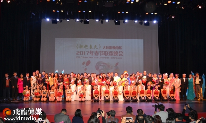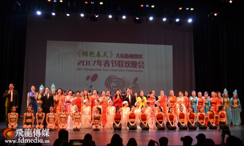 2017年1月8日晚,由休斯顿中国人活动中心打造的一年一度的《拥抱春天》大型综艺春节晚会,在休斯顿斯坦福中心举行。晚会聚集了大休斯顿地区的华侨华人多家社团力量,为休斯顿华侨华人带来一场迎接新年的视觉盛宴。晚会协办的有:国际辣妈大赛组委会、美南山东同乡会、美南江苏总会、川渝同乡会、湖南同乡会、河南同乡会、安徽同乡会、东北同乡会、上海联谊会、华夏学人协会、休斯顿沈阳同乡会、德州广东总会、华夏中文学校、内蒙古同乡会、休斯顿中国联合校友会等。中华人民共和国驻休斯顿总领馆李强民大使率领总领馆全体外交官出席晚会。出席晚会的还有美国国会议员Al Green的亚裔代表谭秋晴、休斯顿华人大法官张文华、中国人活动中心董事长陈珂、著名侨领陈灼刚、美国梁氏基金会主席梁成运、德州中国和平统一促进会会长邓润京、北美台湾乡亲联谊会休斯顿分会会长刘志恒副会长浦浩德等贵宾,与一千多位观众共同度过了一个美好的夜晚。