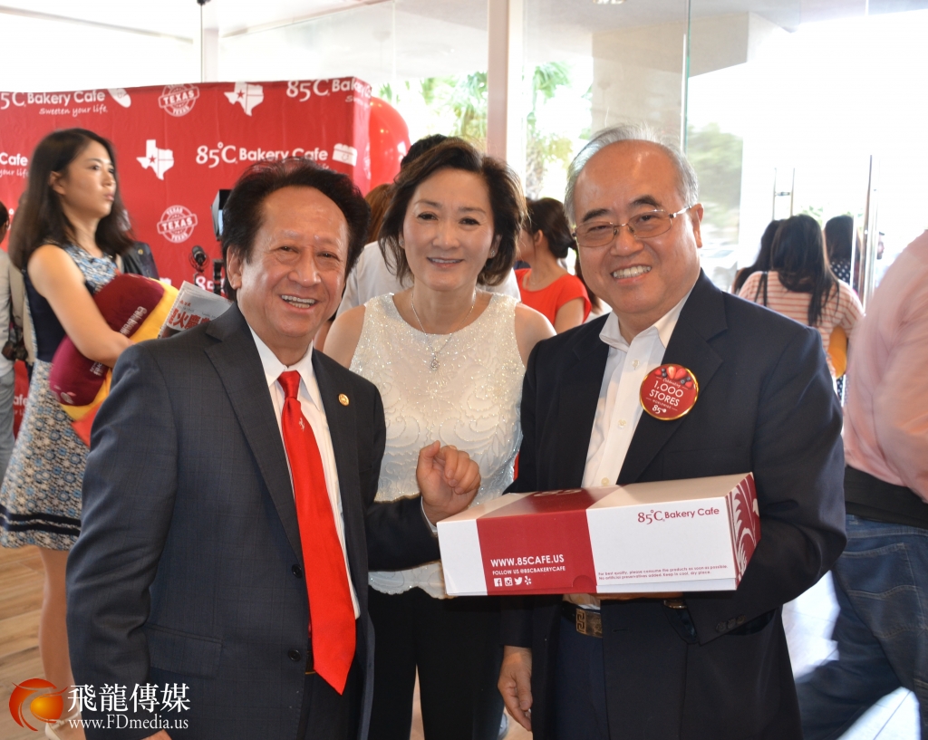7日上午,85°C在休斯顿百利大道(中国城)分店举行开业剪彩仪式,为欢迎85°C全球第1000家店进驻休斯顿,休斯顿市长特纳颁发贺函,宣布7月7 为休斯顿市(85°C Bakery Café Day) 。