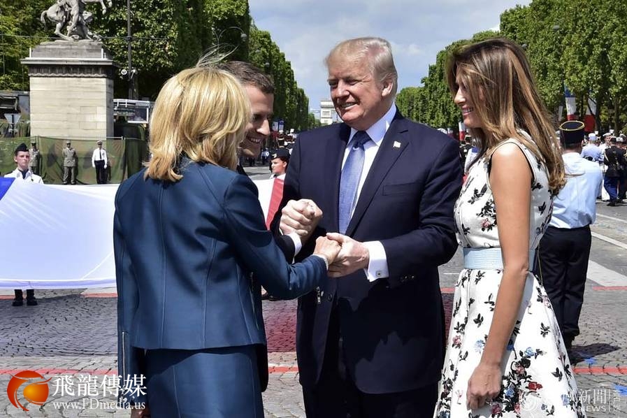 据海外网报道,特朗普握手的尴尬“传奇”继续上演。当地时间2017年7月14日,法国传统的国庆阅兵仪式14日在巴黎举行,法国新任总统马克龙在香榭丽舍大街首次检阅部队。美国总统特朗普受邀出席阅兵仪式,以纪念美国参加第一次世界大战100周年。特朗普13日抵达法国,开启了36小时首访之旅。阅兵式期间,特朗普与法国总统马克龙握手长达25秒,美媒称,这是特朗普最尴尬的一次握手。