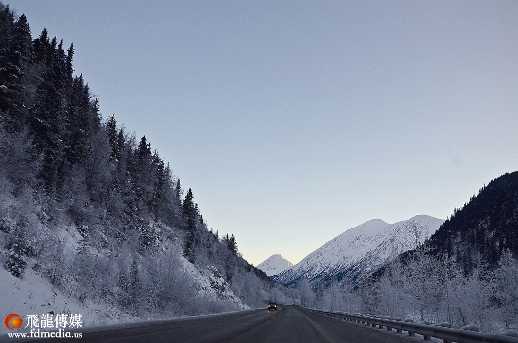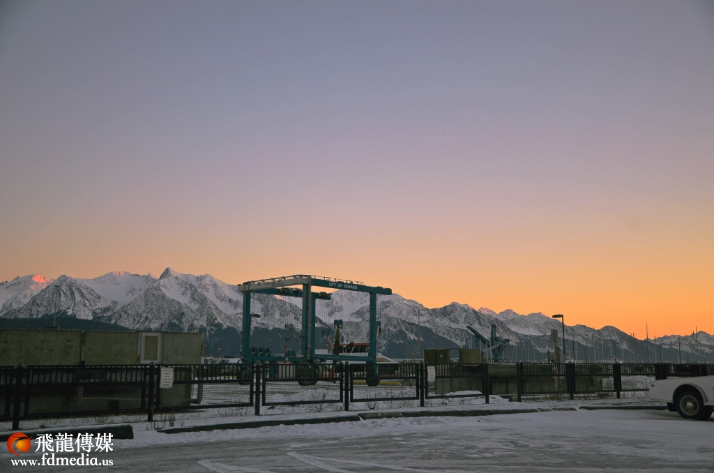 毕竟接近极地的阿拉斯加,每天只有三个半小时的日光,除此之外都是黑沉沉的。第一天我们就早早起床出门吃早餐,那是一餐寿司餐,因为我们需要饱饱的肚子,御寒制暖。从安克雷奇(Anchorage)开车到西沃德(Seward)全程一般要三个半小时,我们就在那有日光的情况下,一路观赏风景,一路有说有笑地向西沃德前行。