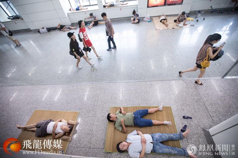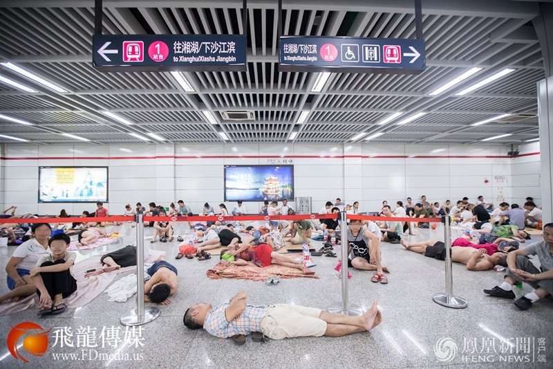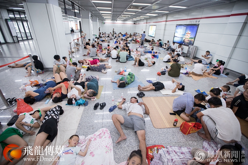 2017年7月23日,杭州市气象台发布高温红色预警信号,受副热带高压控制,预计当天最高气温将达40℃左右。这是杭州连续两天发布高温红色预警。持续高温天气,在杭州一地铁站内,众多民众前来蹭空调纳凉,场面壮观。
