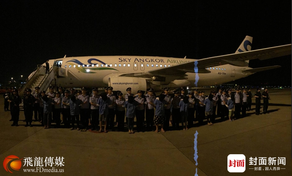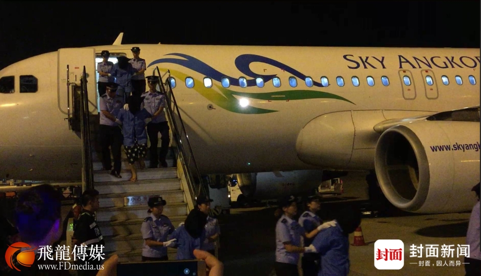 7月27日4点10分,由柬埔寨飞来成都双流国际机场的航班抵达,17名通讯诈骗犯罪嫌疑人在四川警方的押解下走下飞机。四川省公安厅副厅长王雄表示,这批17名犯罪嫌疑人将连夜押解回广安,接受进一步的审讯调查。图为飞机上坐满了四川警察,每两个警察夹护一个嫌疑人。图文:封面新闻 四川新闻网