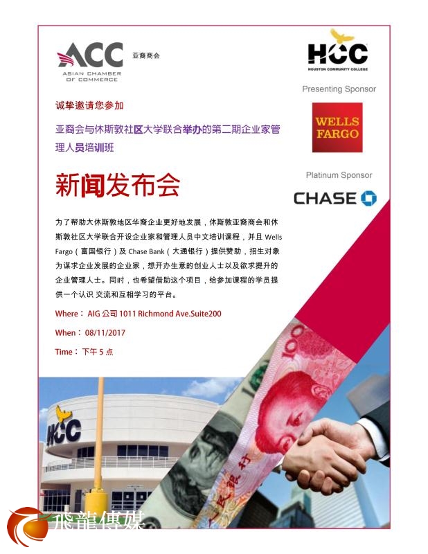 亚商会与休斯顿社区大学联合举办第二期《企业家管理人员培训班》新闻发布会