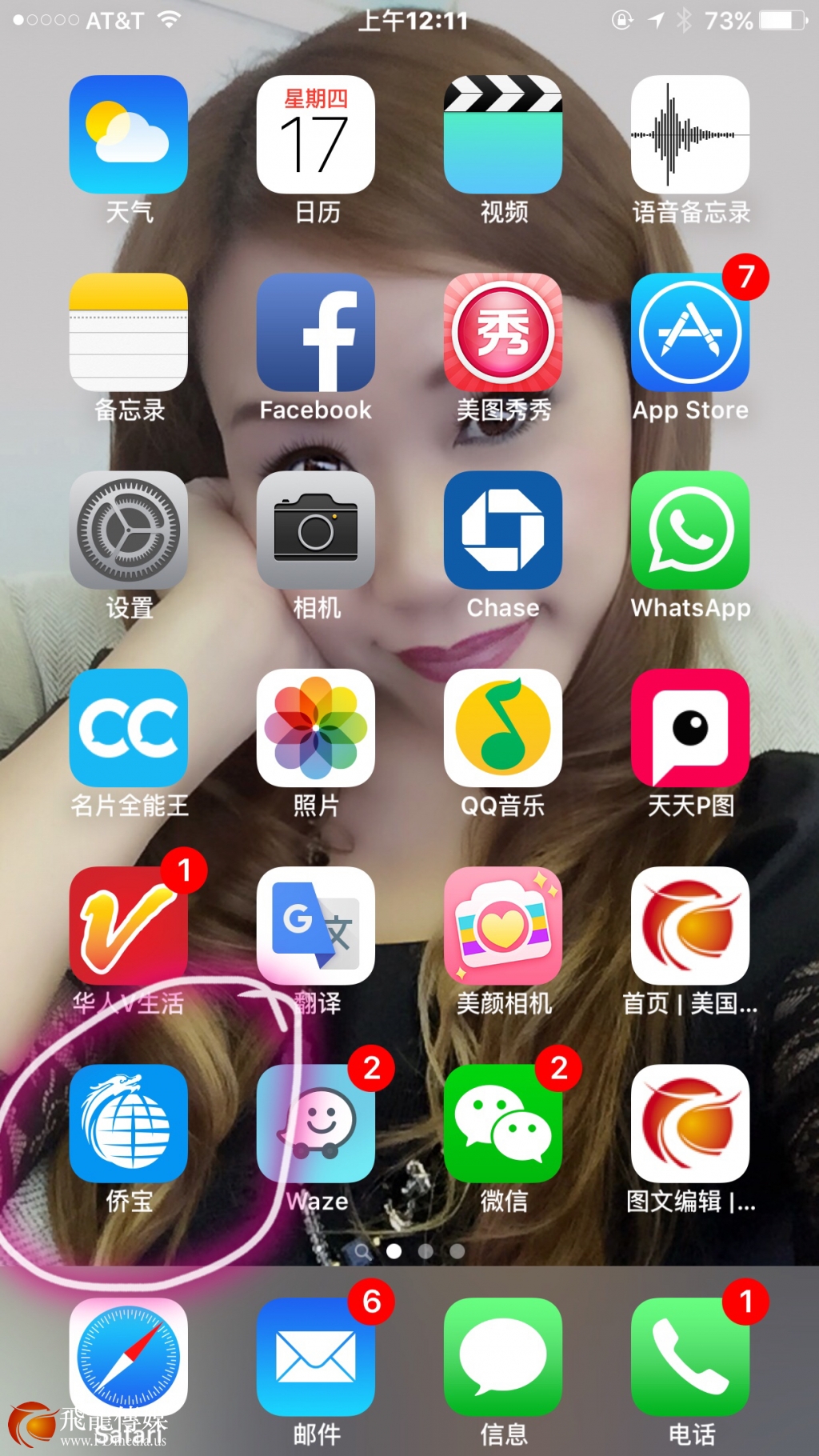(4)你将会看见你的手机屏幕上的侨宝标志点开