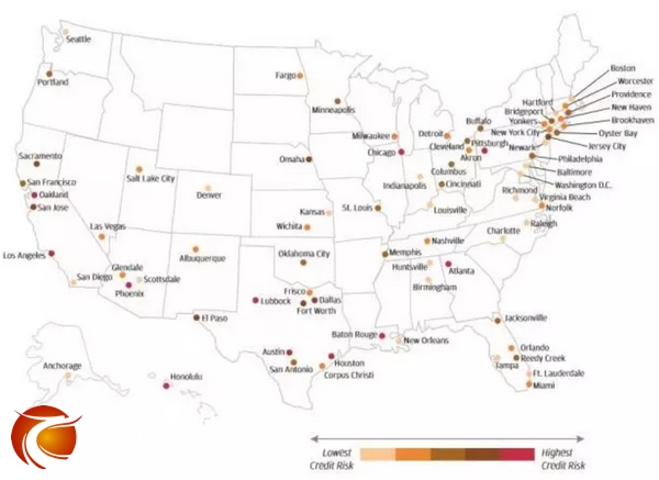 ▲美国各大主要城市信用风险级别(图片来源:摩根大通)