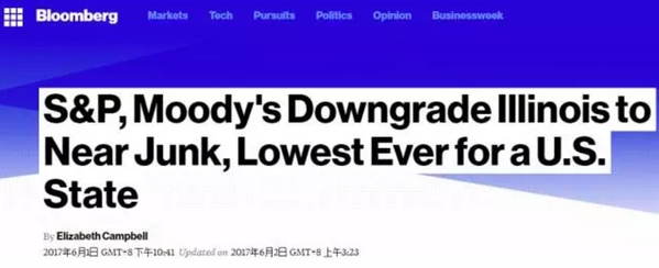 记者还注意到,今年6月初,穆迪和标普双双调降伊利诺伊州信用评级至接近垃圾级别,是美国各州史上的最差评级。