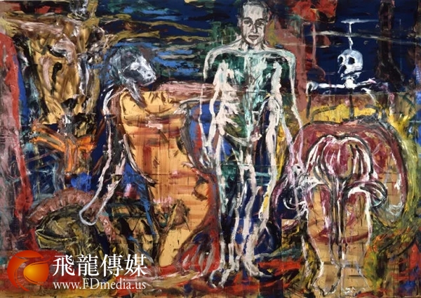 新表现主义是德国政治危机和恐怖主义混合构成历史环境的产儿,它在理论上接受存在主义的哲学观念,在实践中学习抽象表现主义的艺术传统,讲究绘画过程的情感突发和即兴处理,追求一种粗狂的、原始主义的简单踊跃的美学风格,竭力主张还绘画以本来面目,注重绘画性、探索内容、色彩、形式的自我语言。他们的作品主要表现缅怀民族传统的抑郁情境和反思战败历史的悲怆心态,有的作品鞭挞社会的丑恶现象,有的作品则嘲笑自己的无能。其中最负盛名的德国新表现主义的六位代表性艺术家:安塞尔姆·基弗、乔治·巴塞利茨、约尔格·伊门多夫、西格玛·波尔克、马库斯·吕佩尔茨、A·R·彭克。但今天,我们要回顾的是来自美国的新表现主义的传奇人物。