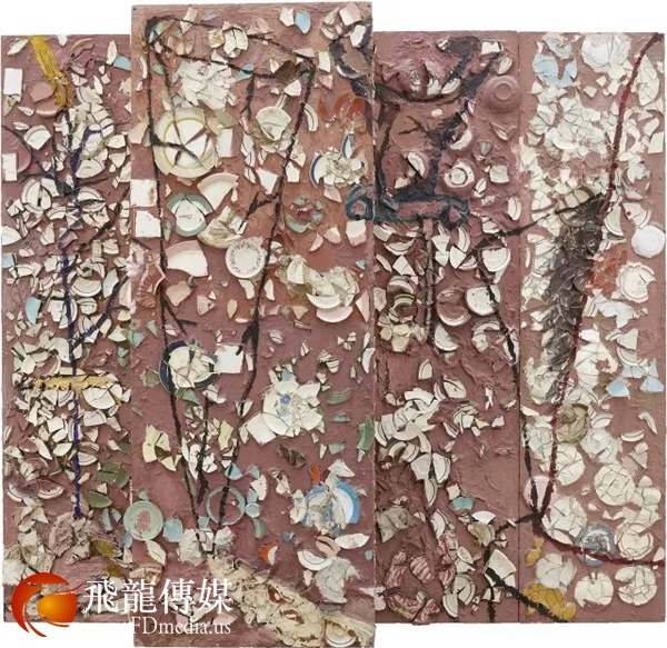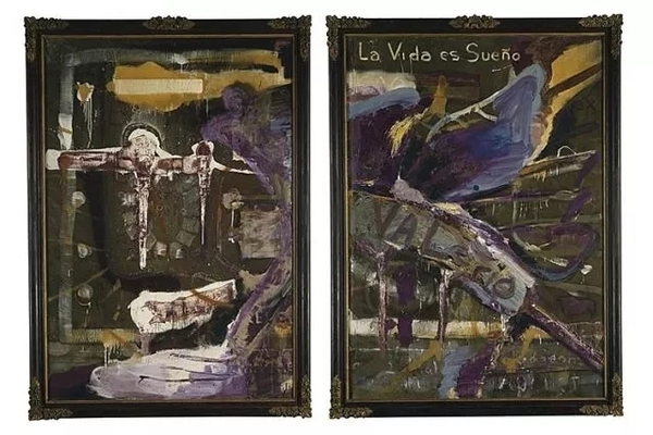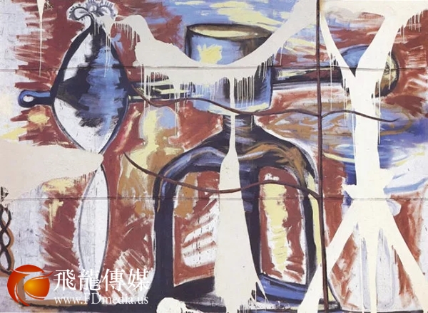 他的盘子绘画在巨大的画幅上粘着破碎的盘子,美国艺术界对其反应多数是狂乱和批评的,而他自己也发表高傲的关于他在艺术界的重要性的声明:我是你们在当今看到最接近毕加索的人物。