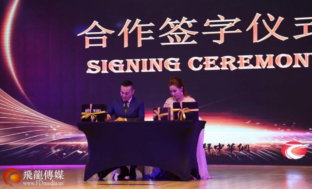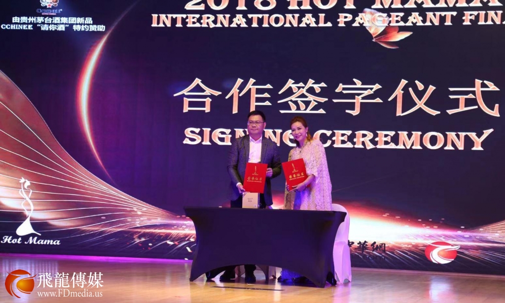 HOT MAMA品牌拥有人陈铁梅女士与毛戈平品牌创始人毛戈平先生在总决赛上签订合作备忘录。