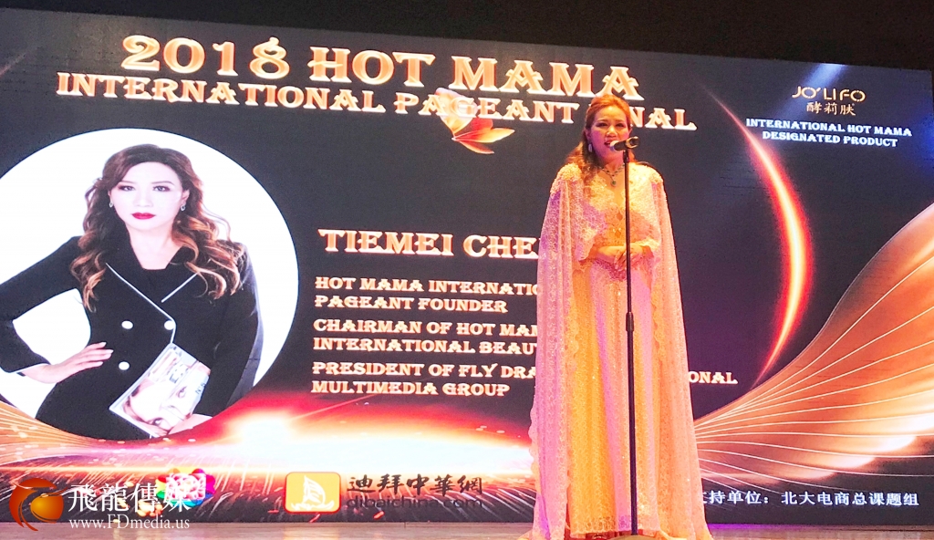 HOT MAMA创始人、美国飞龙国际文化传媒集团总裁 陈铁梅女士致辞。