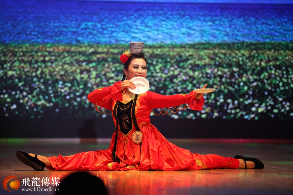 黄惠华在HOT MAMA总决赛表演维族顶碗舞